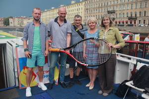 Венцом и апофеозом "Фестиваля Теннисных Городов", основной "фишкой" да "изюминкой" Феста - уже традиционно - стала праздничная прогулка на теплоходе "Золушка". Лучшие представители разных теннисных клубов, сообществ и спортивных слоёв собрались на "фестивальном кораблике": посмотреть на других, рассказать о себе. Да и просто полюбоваться живописными видами города "с воды". И название у финального мероприятия подходящее: "По теннисным рекам и каналам Санкт-Петербурга".